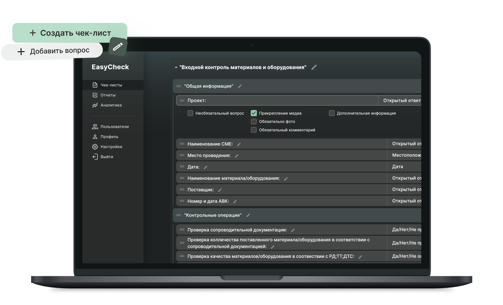 Создавайте вопросы, назначайте ответственного за проверку и срок выполнения